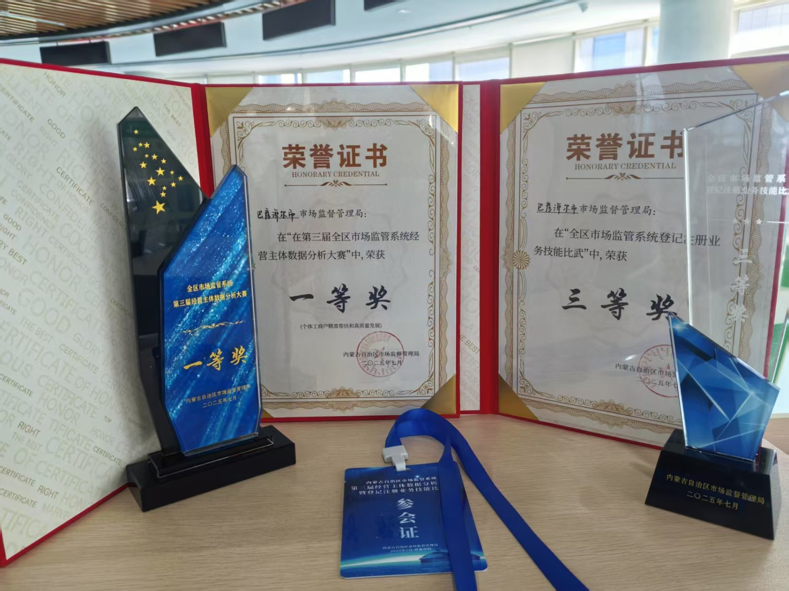 内蒙古自治区市场监管系统第三届经营主体数据分析大赛暨登记注册业务技能比武落幕,巴彦淖尔市“天赋河套队”凭借《个体工商户三型划分标准优化路径与模型实践》课题分析和自身业务技能分别斩获数据分析大赛冠军、登记注册业务技能比武第三名的好成绩。