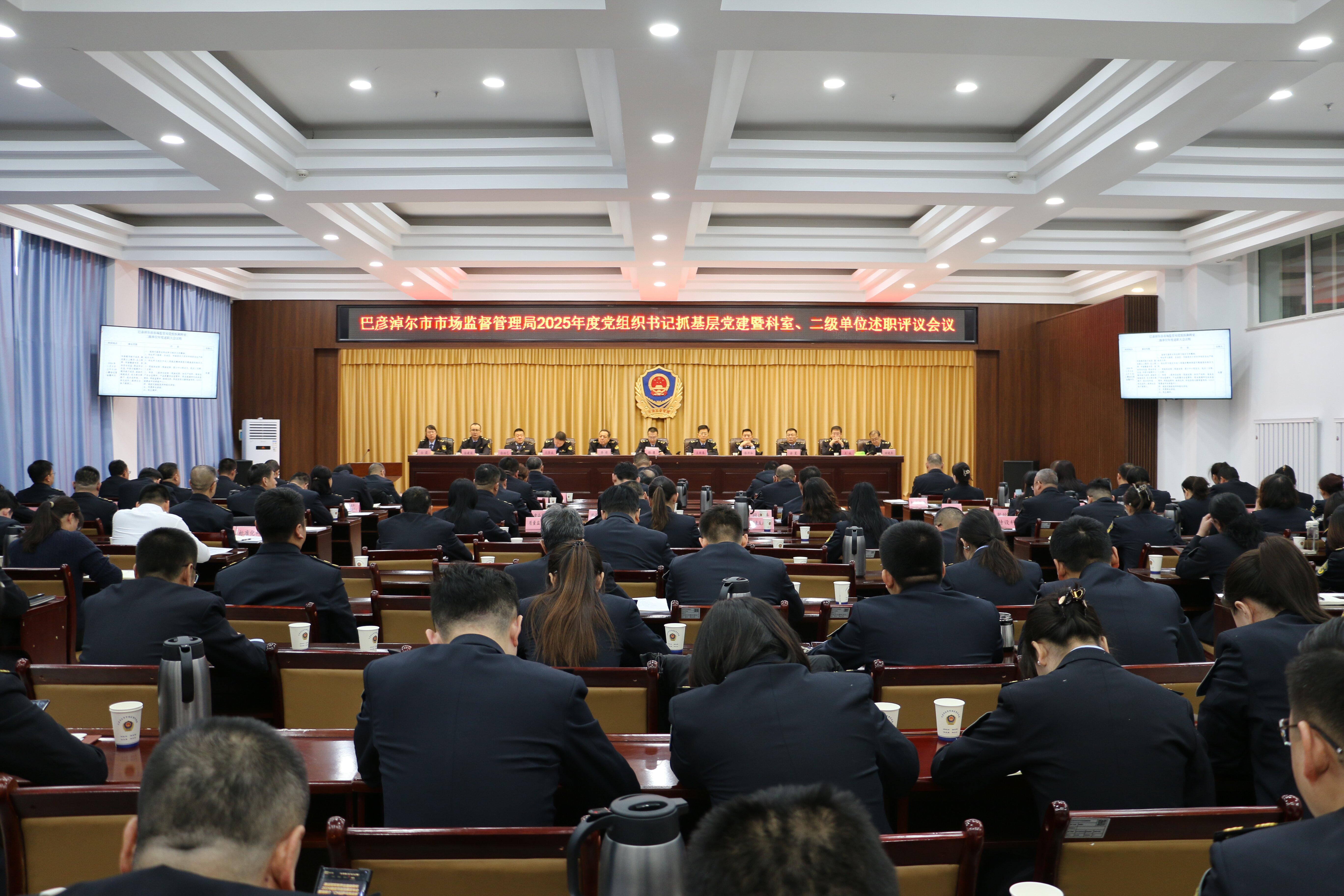 1月8日上午,巴彦淖尔市市场监督管理局召开2025年度党组织书记抓基层党建暨科室、二级单位述职评议会议。市局领导班子成员、副处级以上领导,总工程师、市场稽查专员、食品安全总监、药品安全总监,市质计检测中心领导班子成员,派驻纪检组成员,各支部支委班子,机关各科室、一体化运作二级单位全体干部职工参加会议,市局党组书记、局长邓勇主持会议并讲话。