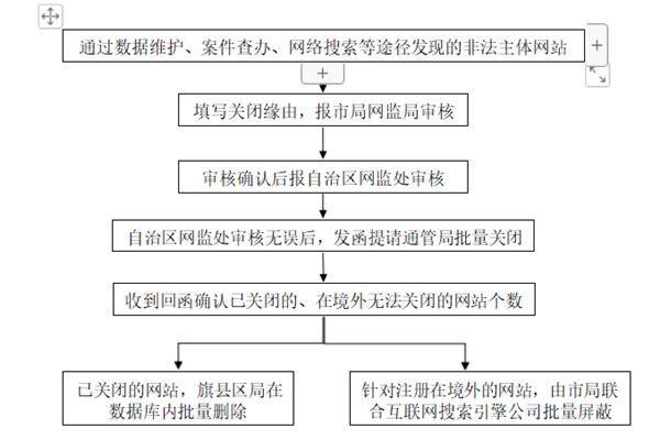 市局网监局应当自收到各旗县区网监机构上报的非法 主体网站材料审核确认,经核实属于非法主体网站的向自治区局网监处提请关闭。