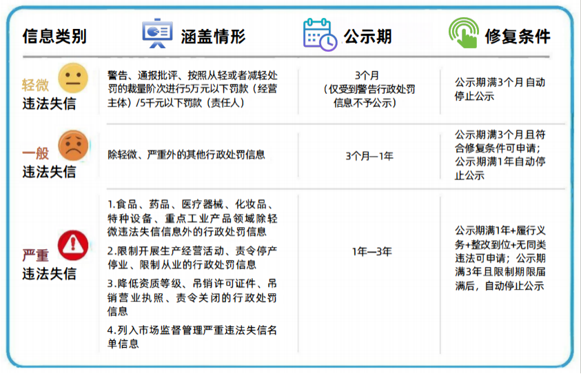 (注:同一违法失信信息涉及多种行政处罚的,其公示期以所涉期限中最长的为准。)